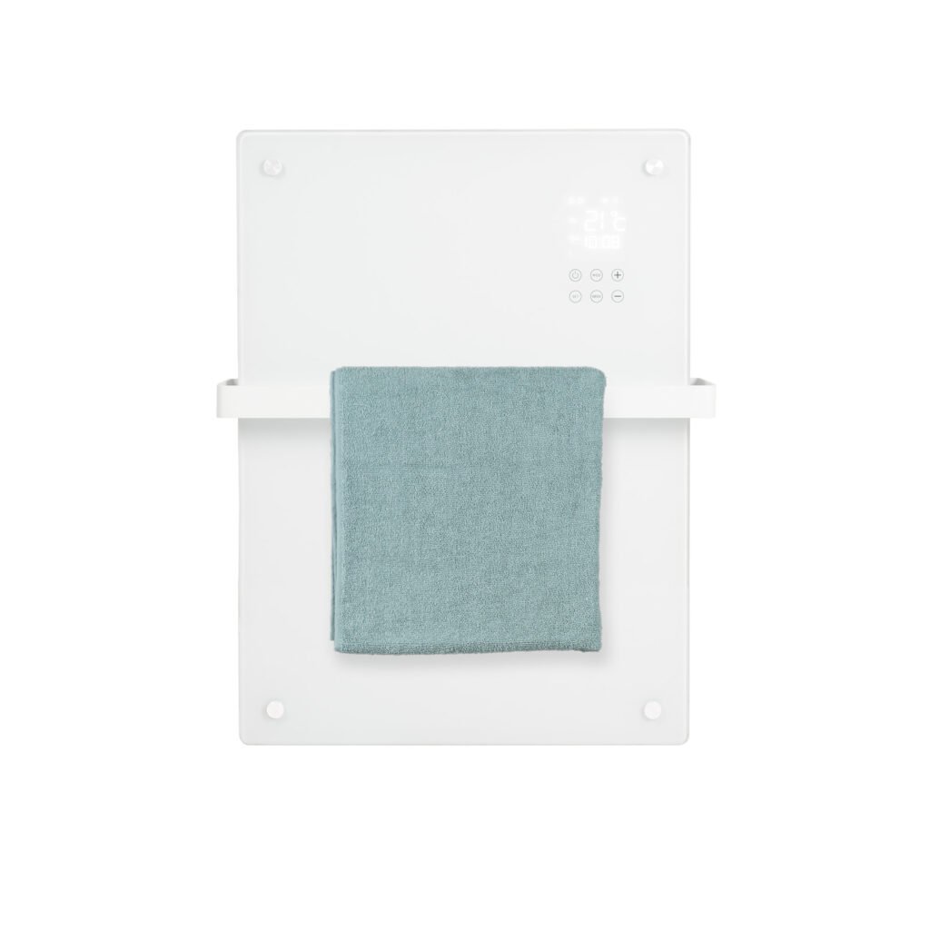 El Eurom Alutherm Sani Verre 800 WiFi White es un calefactor para baño con un frontal de cristal elegante. Además, el Alutherm Sani Verre incluye un toallero integrado, lo que le aporta un diseño moderno y estilizado, convirtiéndolo en la opción perfecta para tu baño.