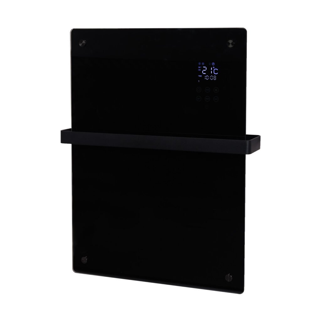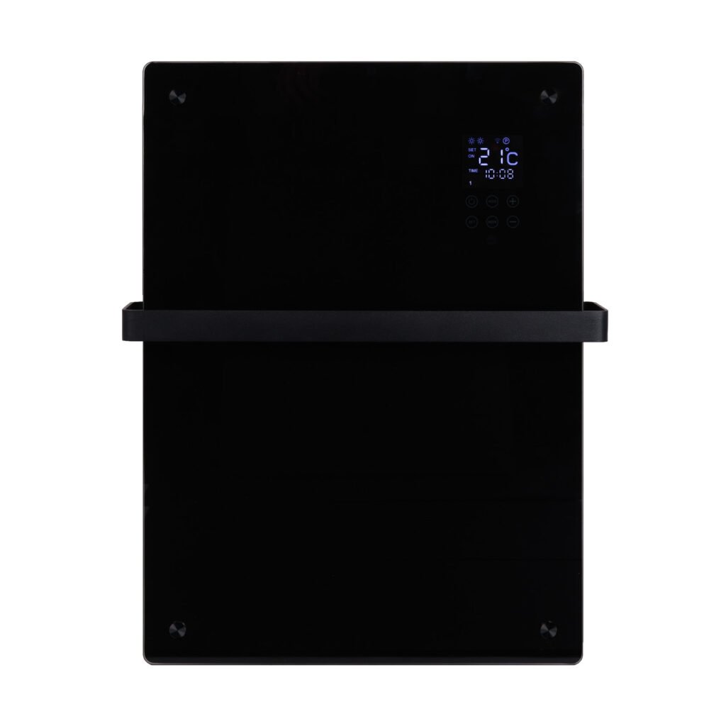 El Eurom Alutherm Sani Verre 800 Wifi Black es un calefactor de baño con frontal de cristal. Además, incluye un toallero. Esto le da un aspecto elegante y moderno, ideal para el baño.