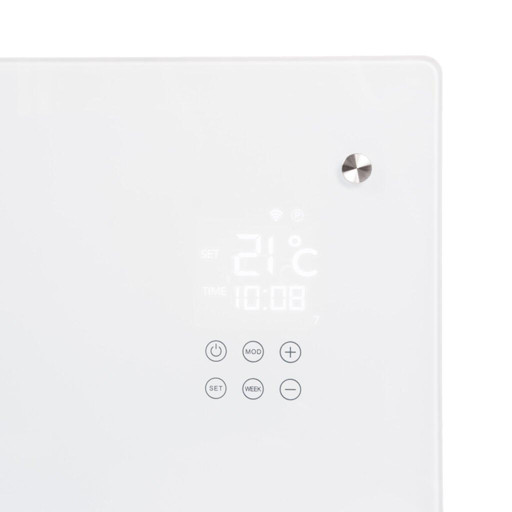 El Eurom Alutherm Verre 1500 WiFi White es un convector moderno con una carcasa esmaltada, que le confiere un diseño elegante y contemporáneo. Este calefactor no solo es funcional, sino que también es un elemento decorativo ideal para realzar cualquier espacio de tu hogar.