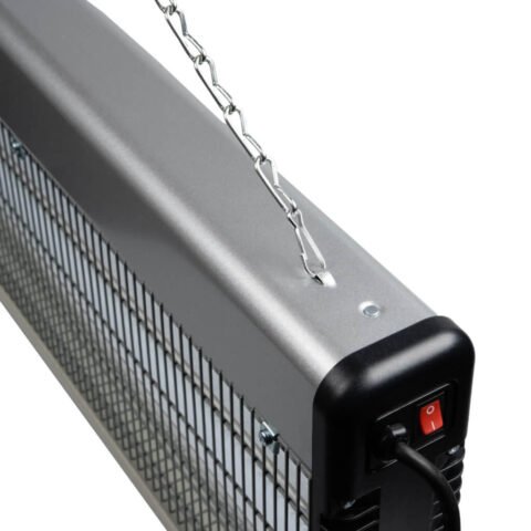 El Eurom Fly Away Metal 40 LED es un insecticida eficaz. Sus dos luces LED de 10 vatios atraen a los insectos. Estos vuelan hacia la red de alta tensión de 2200 voltios, donde mueren. Los insectos se recogen en la bandeja colectora, que también es fácil de extraer para su limpieza.